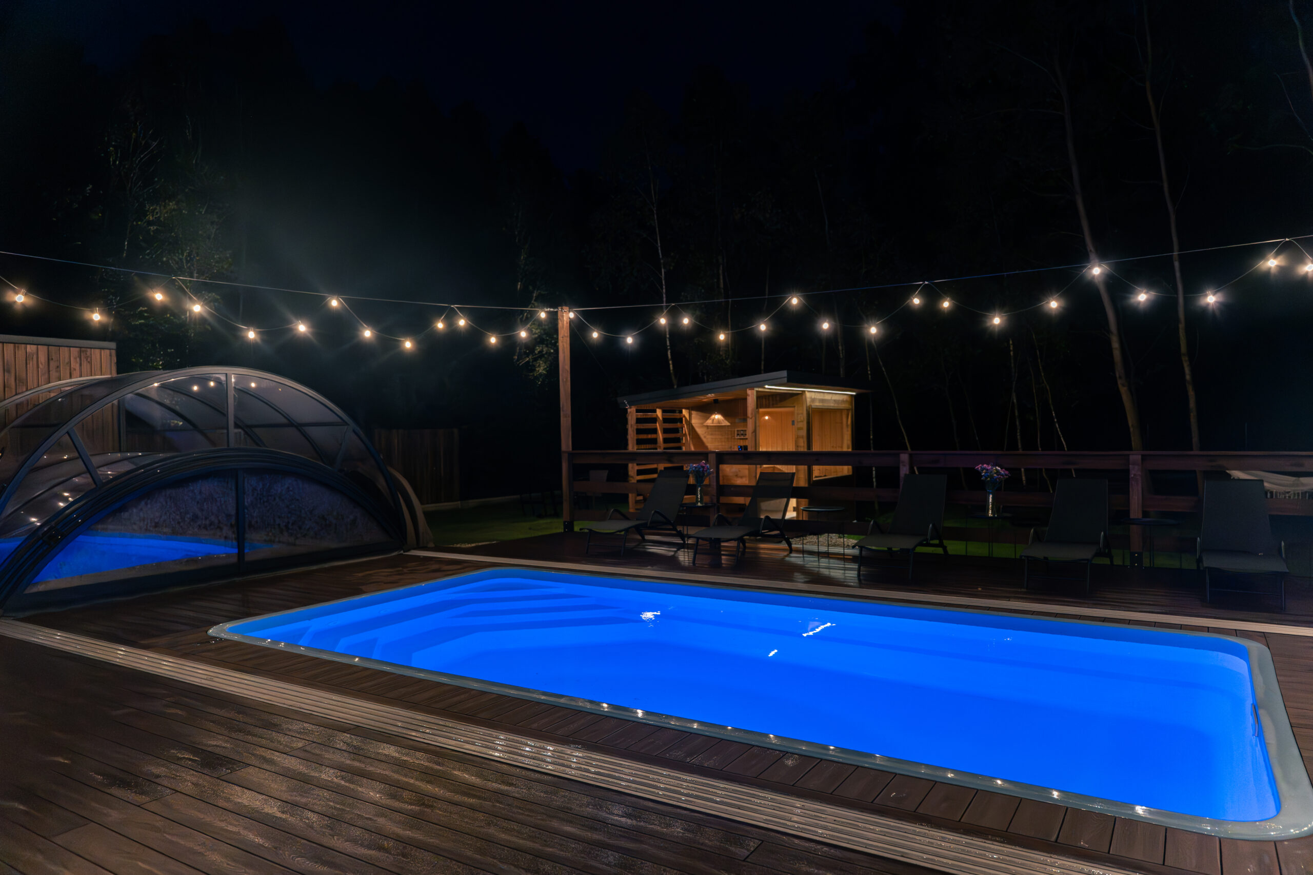 Nasza Willa oferuje miejsce dla 22 gości w tym nocleg dla 16 osób. Na tarasie czeka na Państwa przestronna wiata z możliwością zimowego ogrodu (ogrzewana zimą) oraz podgrzewany całoroczny basen ze strefą leżaków do opalania. W podświetlonym ogrodzie znajdą Państwo gorącą balię oraz saunę ze śpiewem ptaków. Leśny Reset został urządzony ze smakiem i dbałością o detale, oferując pełne wyposażenie, elegancki design oraz atmosferę, w której luksus spotyka się z naturą.