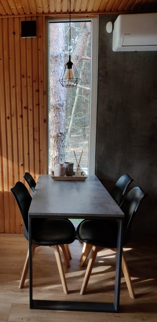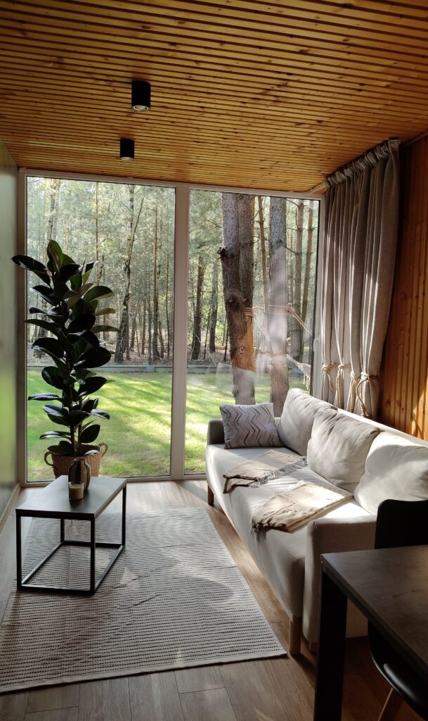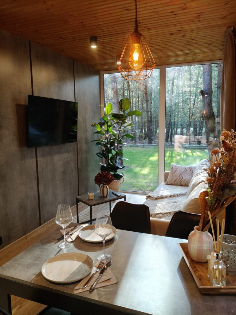 Klimatyczne wnętrze, w pełni wyposażona kuchnia, wygodne łóżka, szybkie WiFi. Tu nie musisz rezygnować z komfortu, by być bliżej natury.